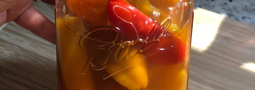 Next I pulled a jar of pickled peppers out of the fridge. These are homemade sweet pickled peppers that peter piper did not pick. But my friend, Claire, and I made them for her husband’s birthday a while back. The next time I have a pickling party I’ll be sure to take pictures and put it up on here! Anyway, I julienned these as well.