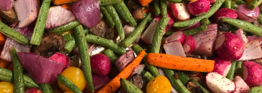 I popped both pans in the oven and roasted them at 375 degrees for about 30-45 minutes.