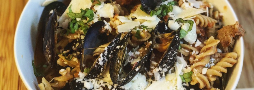 Note on mussels serving size: The bulk of the weight when you buy mussels is the shells. Usually for a main I aim for about a half lb of mussels per person when I’m mixing them into something hearty like this. If I was just doing mussels in a wine sauce with bread or frites I would shoot for closer to a pound a person. But if I was serving them as an appetizer I would only want a quarter pound per person.